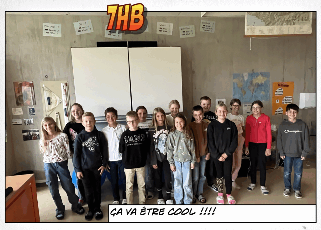 nous sommes les 7Hb. Nous avons 2 enseignants : Marlotte et Pascal.